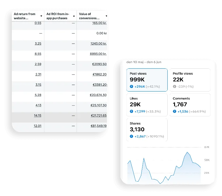 Vi fokuserar på det som verkligen gör skillnad – oavsett om det är högre ROAS, fler kvalificerade leads eller ökad omsättning. Tydliga mål, mätbara resultat och arbete som faktiskt lönar sig.